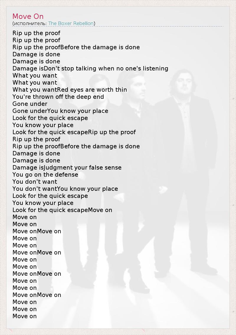 Это интересно:The Boxer Rebellion – международный рок-проект, в состав которого входят 4 участника из разных стран мира - Натан Николсон (Nathan Nicholson) (Vocals/Guitar/Keys) из США, Тодд Хоу (Todd Howe) (Lead Guitar) из Австралии и двое англичан - Адам Харрисон (Adam Harrison) (Bass Guitar) и Пьерс Хьюит (Piers Hewitt) (Drums). Группа впервые собралась в 2001 году. На их счету... продолжение