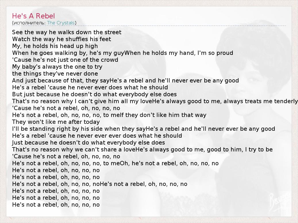 А как ты думаешь, о чем песня "He's A Rebel" ?