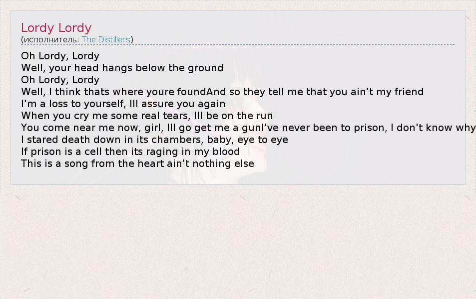 А как ты думаешь, о чем песня "Lordy Lordy" ?