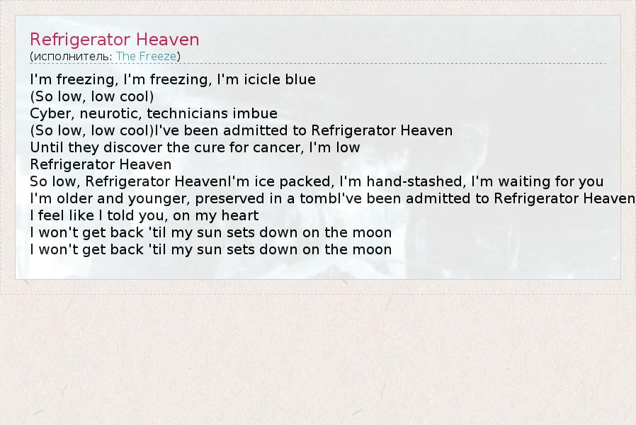 А как ты думаешь, о чем песня "Refrigerator Heaven" ?