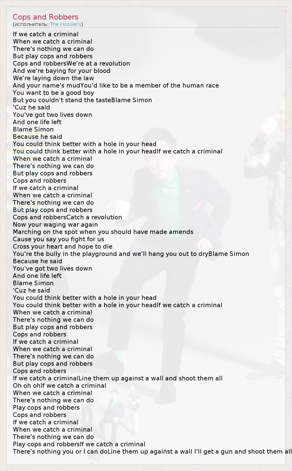 А как ты думаешь, о чем песня "Cops and Robbers" ?