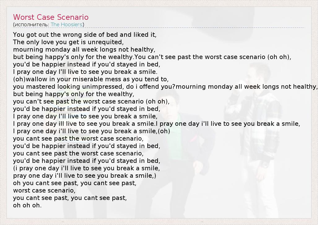 А как ты думаешь, о чем песня "Worst Case Scenario" ?