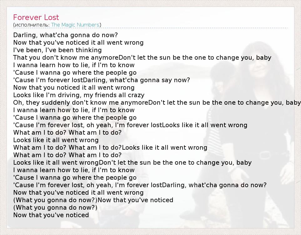 'Cause I'm forever lost, oh yeah, I'm forever lostDarling, what'cha gonna do now?