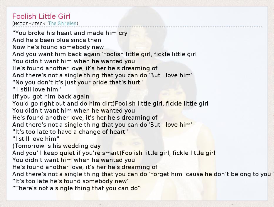 А как ты думаешь, о чем песня "Foolish Little Girl" ?