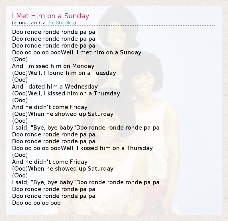 А как ты думаешь, о чем песня "I Met Him on a Sunday" ?