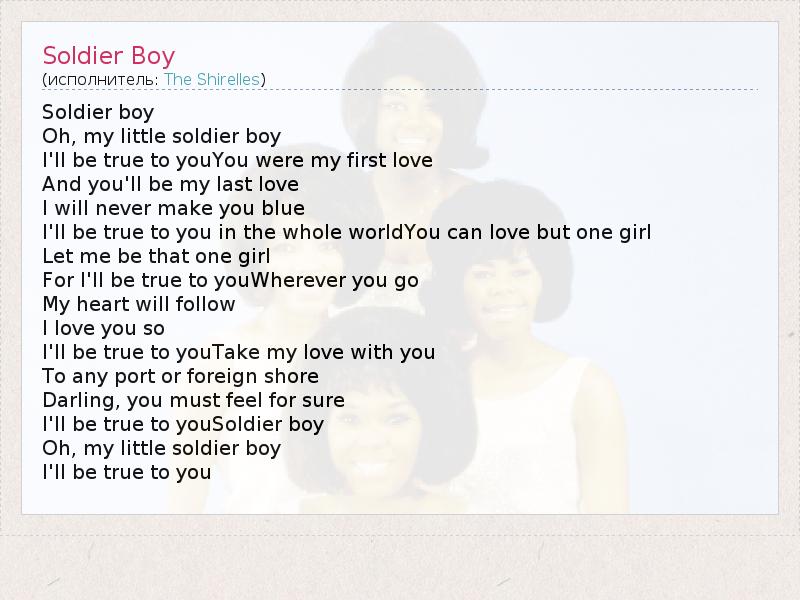 А как ты думаешь, о чем песня "Soldier Boy" ?
