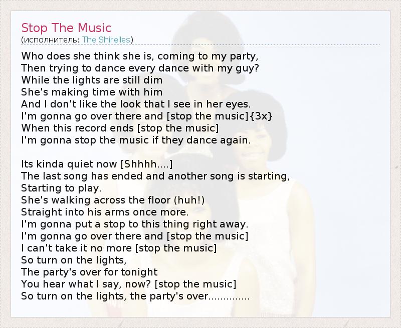 А как ты думаешь, о чем песня "Stop The Music" ?