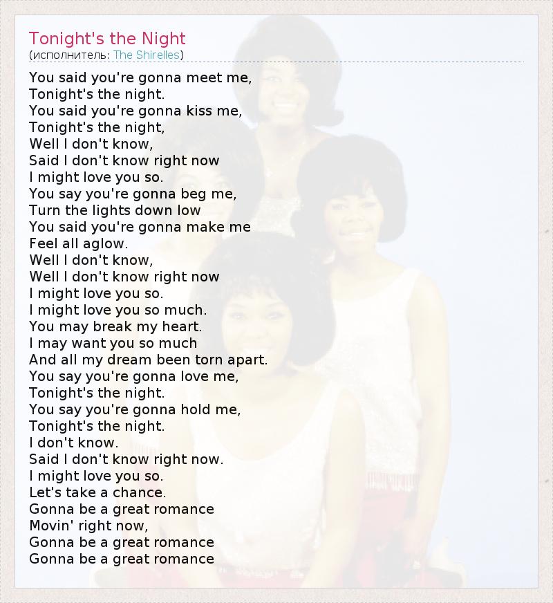 А как ты думаешь, о чем песня "Tonight's the Night" ?