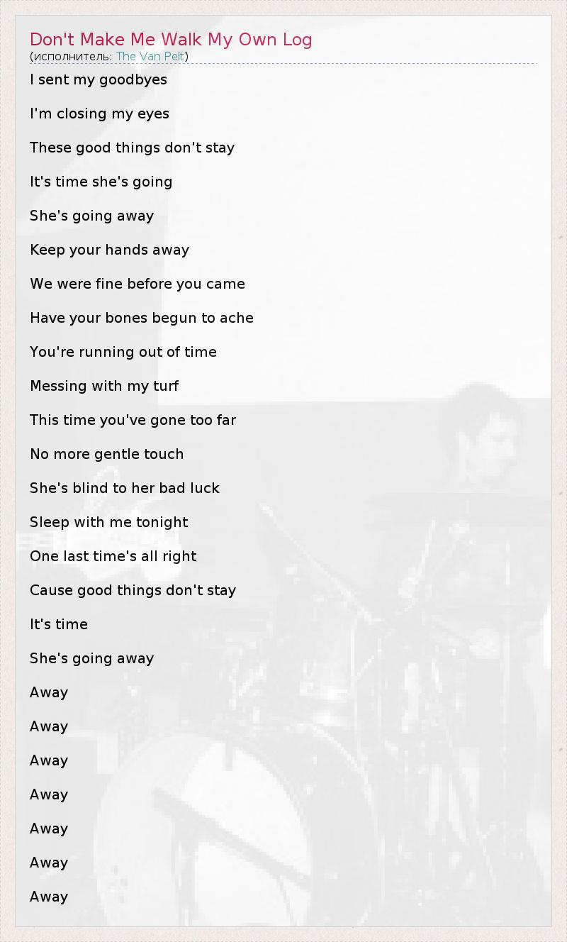 А как ты думаешь, о чем песня "Don't Make Me Walk My Own Log" ?