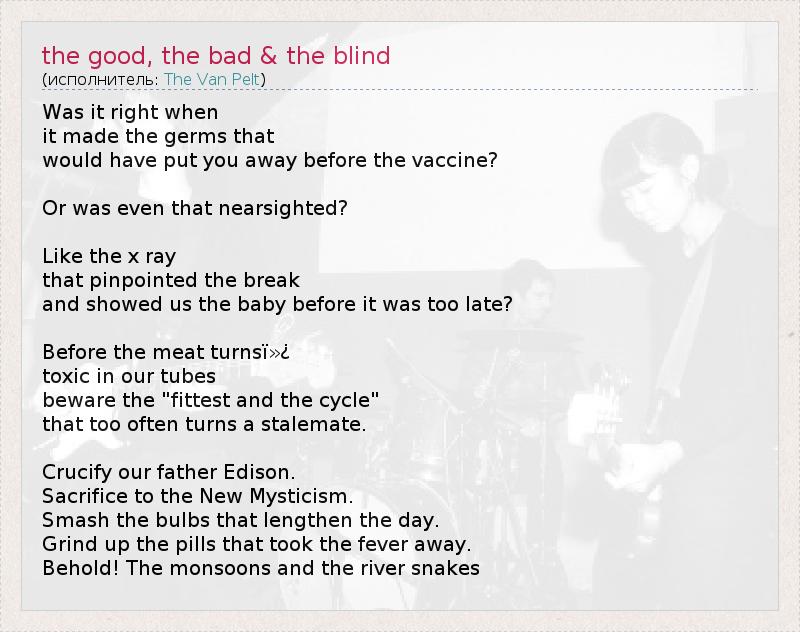 ГлавнаяИсполнителиThe Van Peltthe good, the bad & the blind