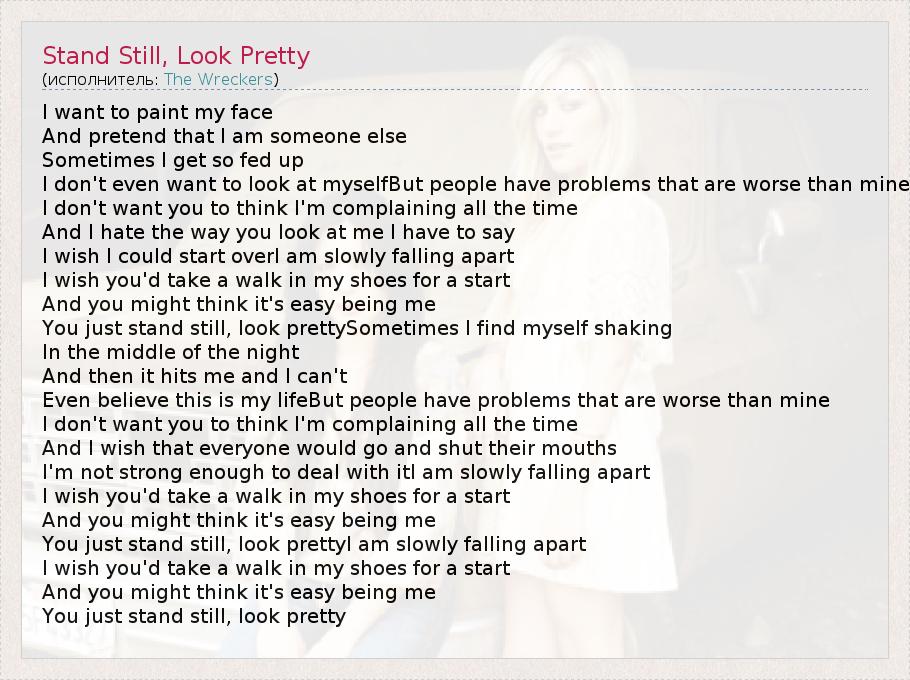 А как ты думаешь, о чем песня "Stand Still, Look Pretty" ?