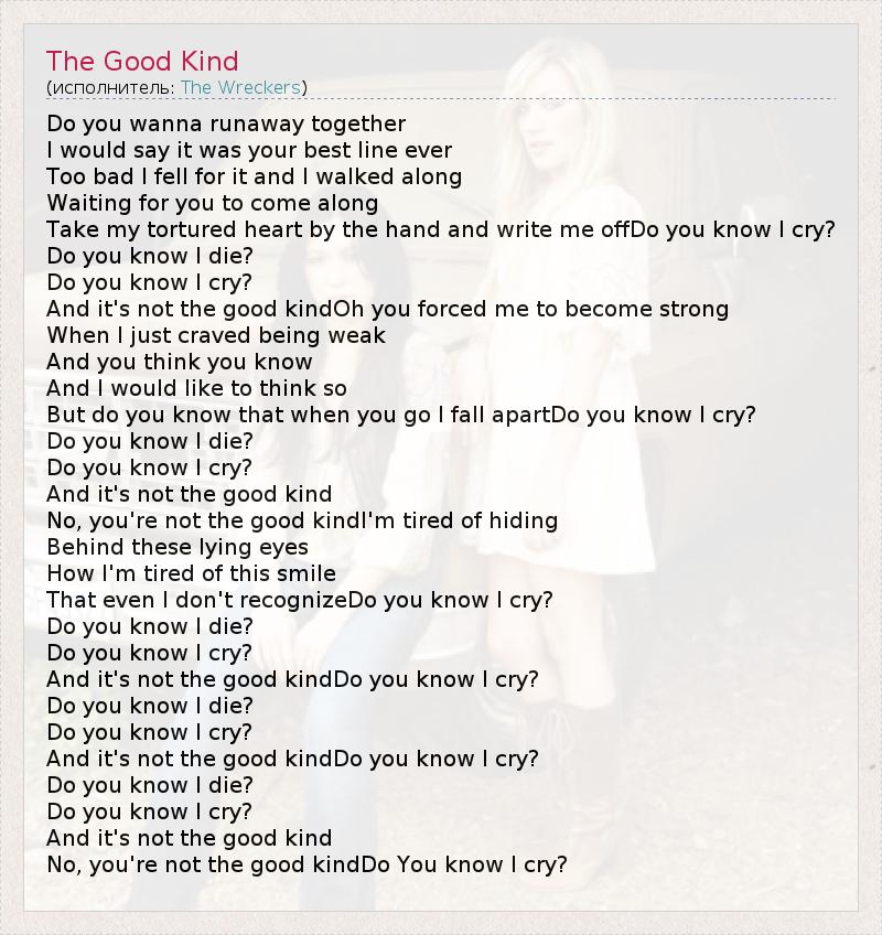 No, you're not the good kindDo You know I cry?