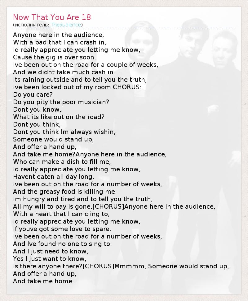 А как ты думаешь, о чем песня "Now That You Are 18" ?