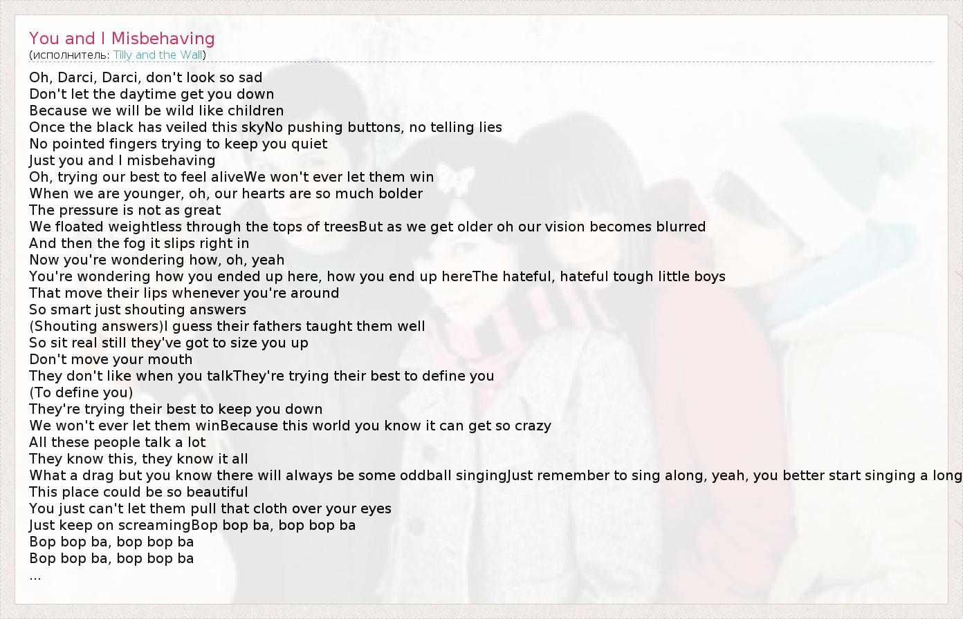 А как ты думаешь, о чем песня "You and I Misbehaving" ?