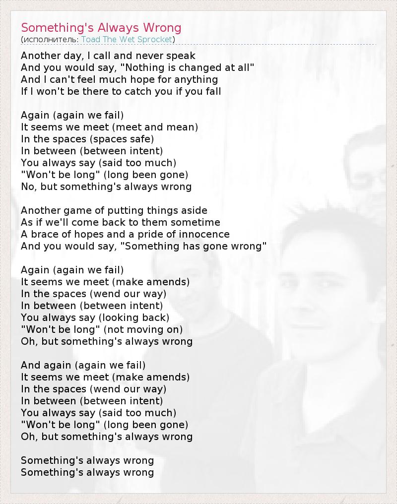 А как ты думаешь, о чем песня "Something's Always Wrong" ?