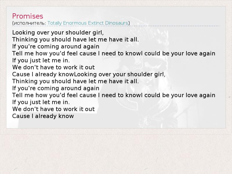А как ты думаешь, о чем песня "Promises" ?