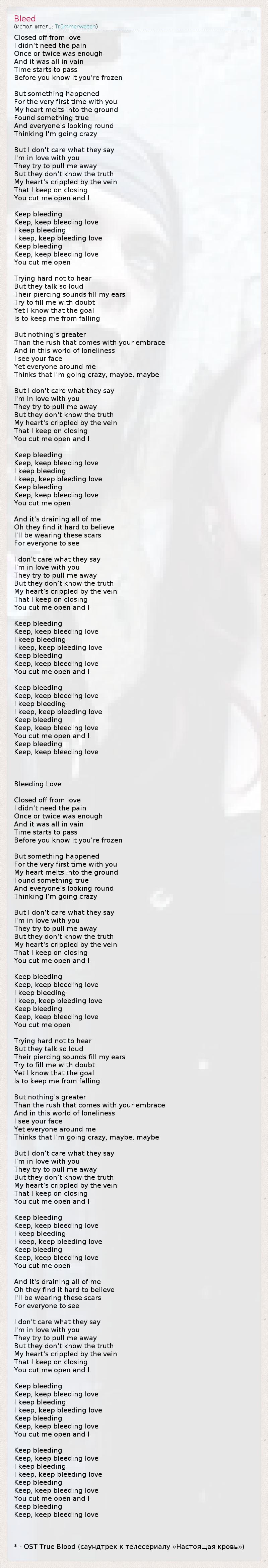 Капли крови любви (перевод Евгения Гурылёва из Москвы)