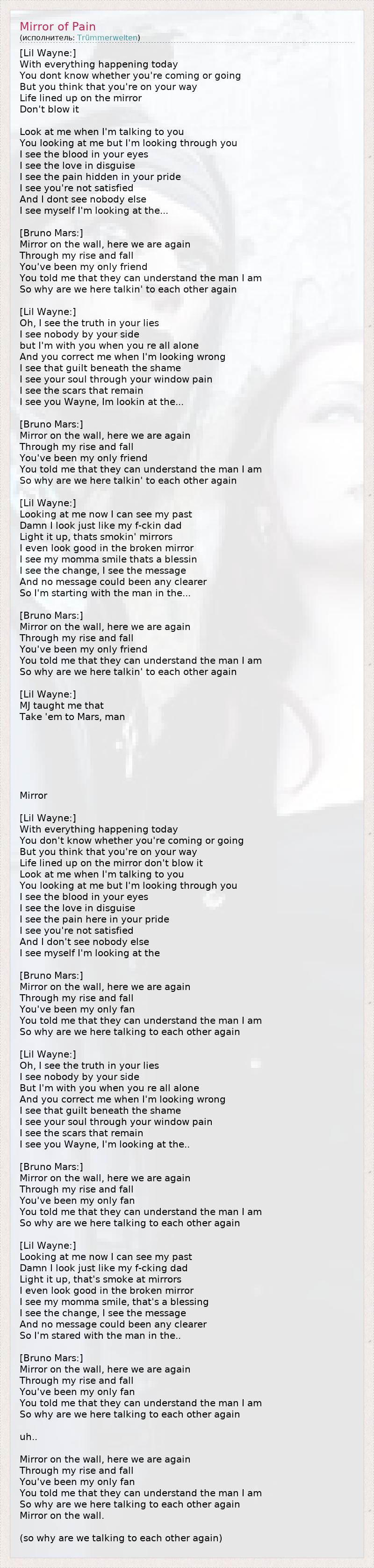 А как ты думаешь, о чем песня "Mirror of Pain" ?