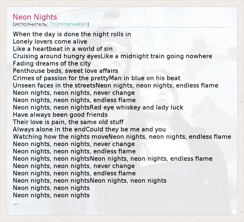 А как ты думаешь, о чем песня "Neon Nights" ?