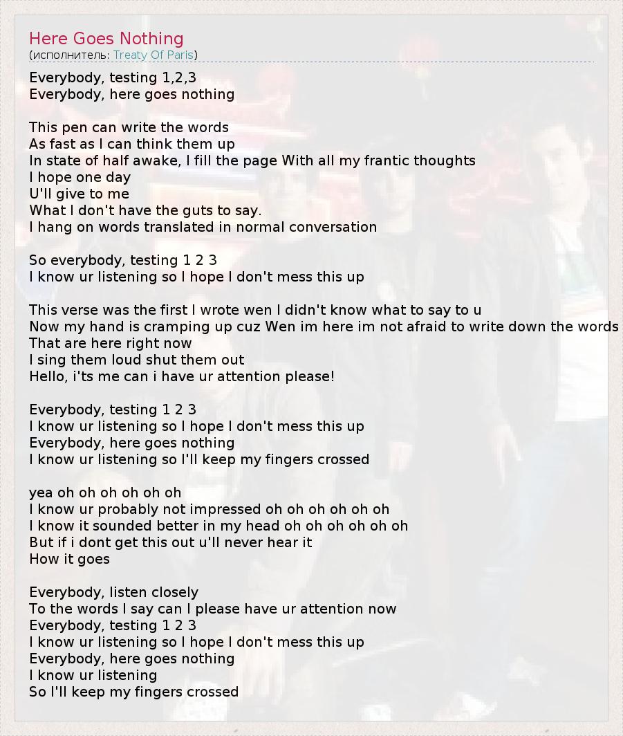 А как ты думаешь, о чем песня "Here Goes Nothing" ?