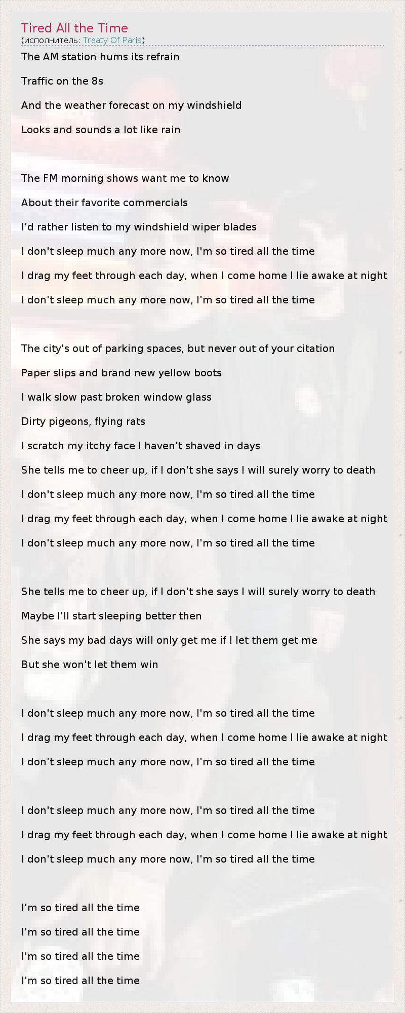 А как ты думаешь, о чем песня "Tired All the Time" ?