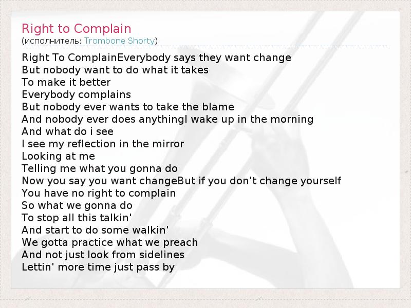 А как ты думаешь, о чем песня "Right to Complain" ?