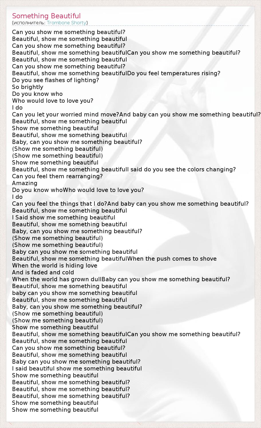 Beautiful, show me something beautifulCan you show me something beautiful?