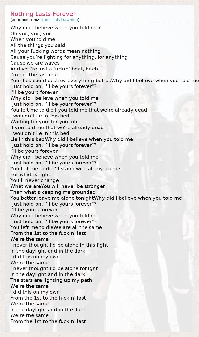 А как ты думаешь, о чем песня "Nothing Lasts Forever" ?