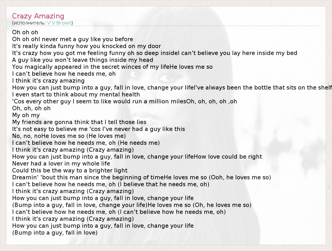 А как ты думаешь, о чем песня "Crazy Amazing" ?