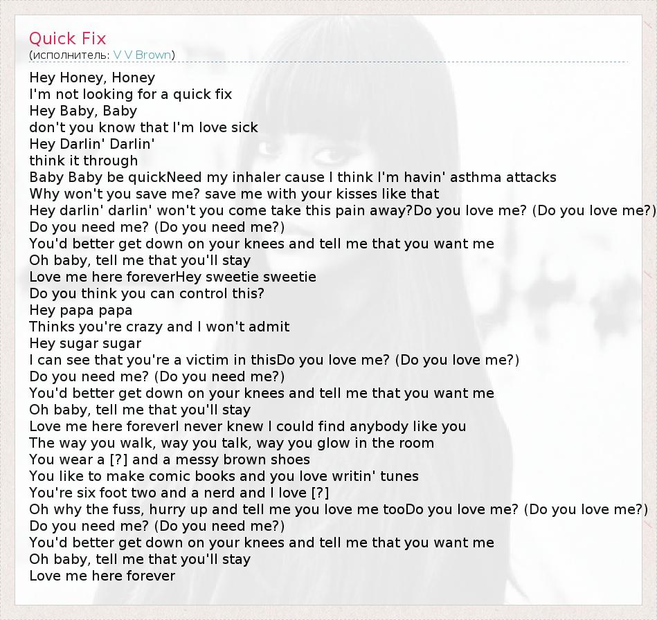А как ты думаешь, о чем песня "Quick Fix" ?