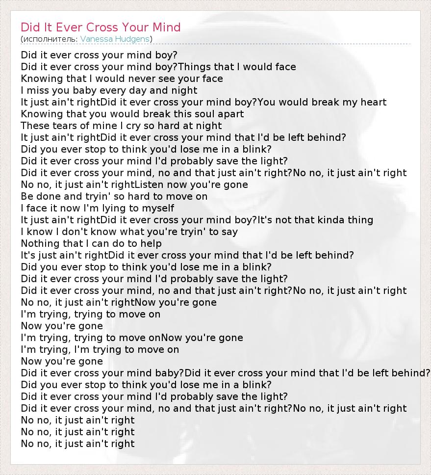 А как ты думаешь, о чем песня "Did It Ever Cross Your Mind" ?