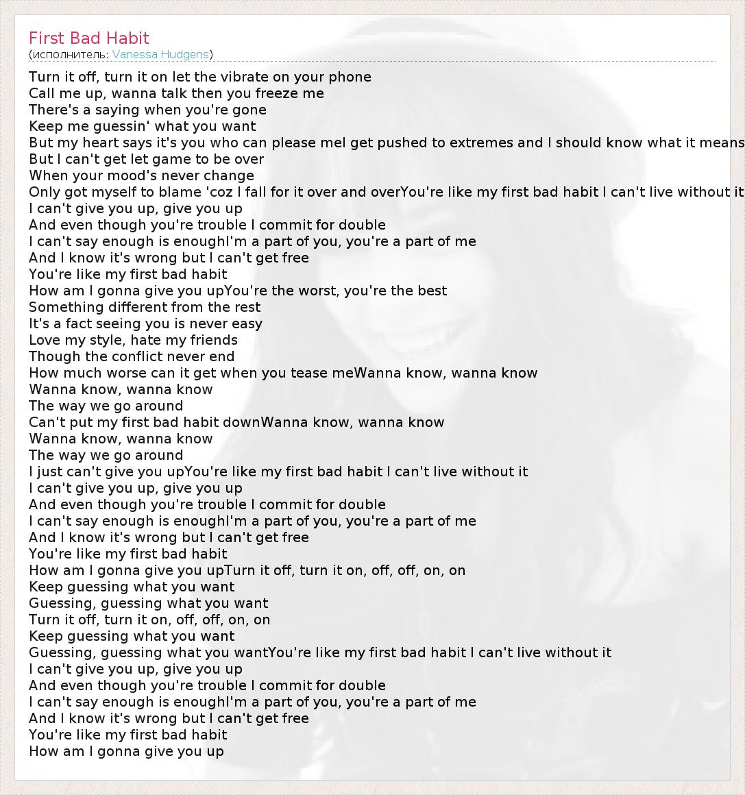 А как ты думаешь, о чем песня "First Bad Habit" ?