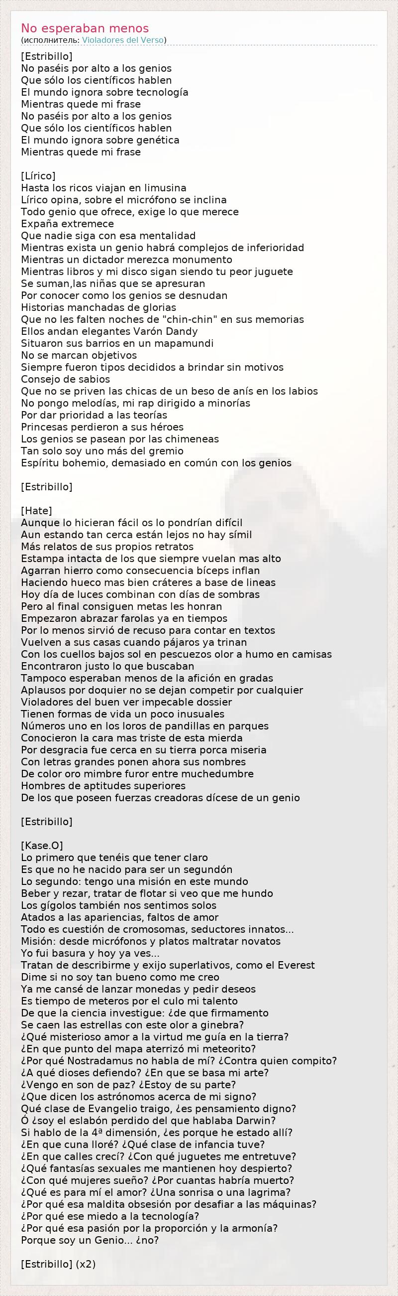 А как ты думаешь, о чем песня "No esperaban menos" ?