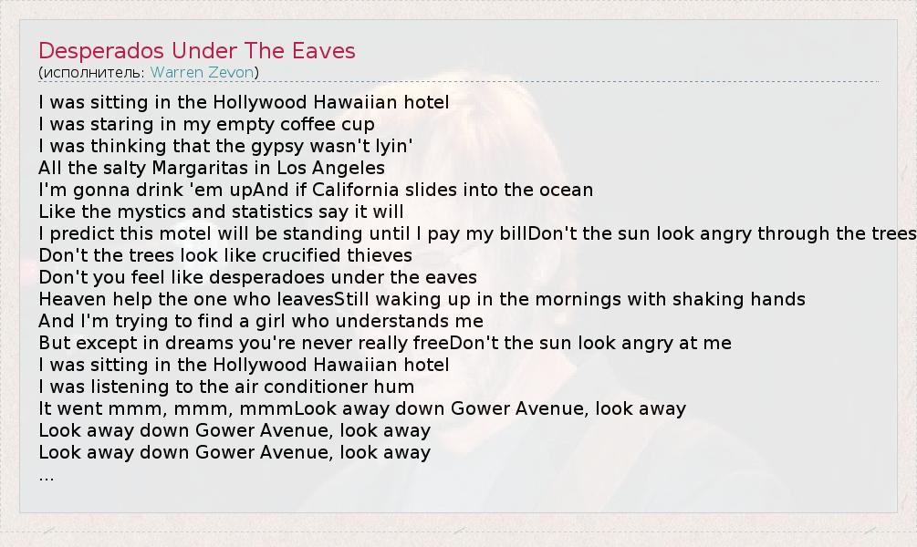 А как ты думаешь, о чем песня "Desperados Under The Eaves" ?