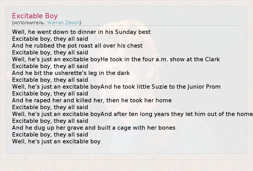 А как ты думаешь, о чем песня "Excitable Boy" ?