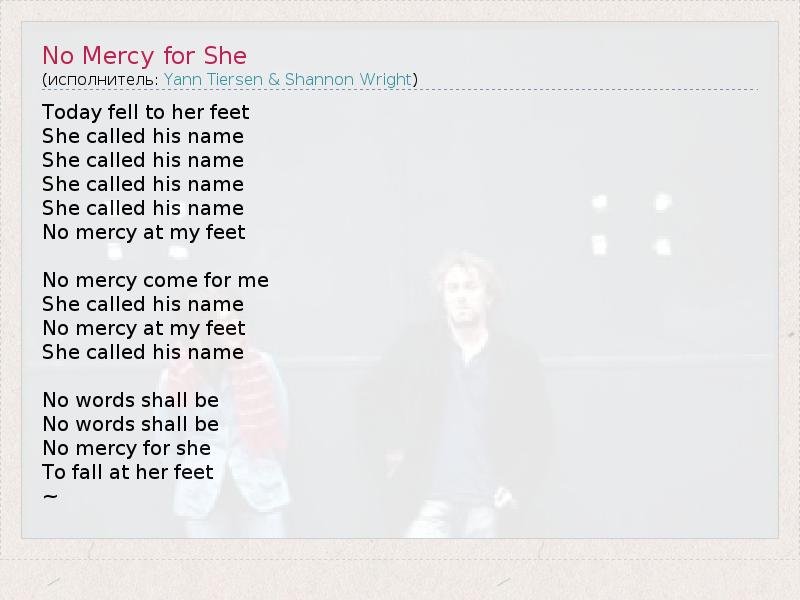 Today fell to her feet She called his name She called his name She called his name She called his name No mercy at my feet No mercy come for me She called his name No mercy at my feet She called his name No words shall be No words shall be No mercy for she To fall at her feet ~