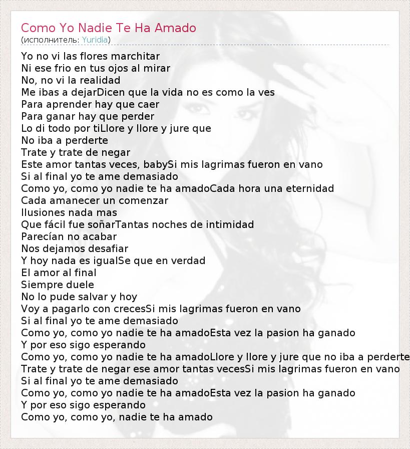 А как ты думаешь, о чем песня "Como Yo Nadie Te Ha Amado" ?