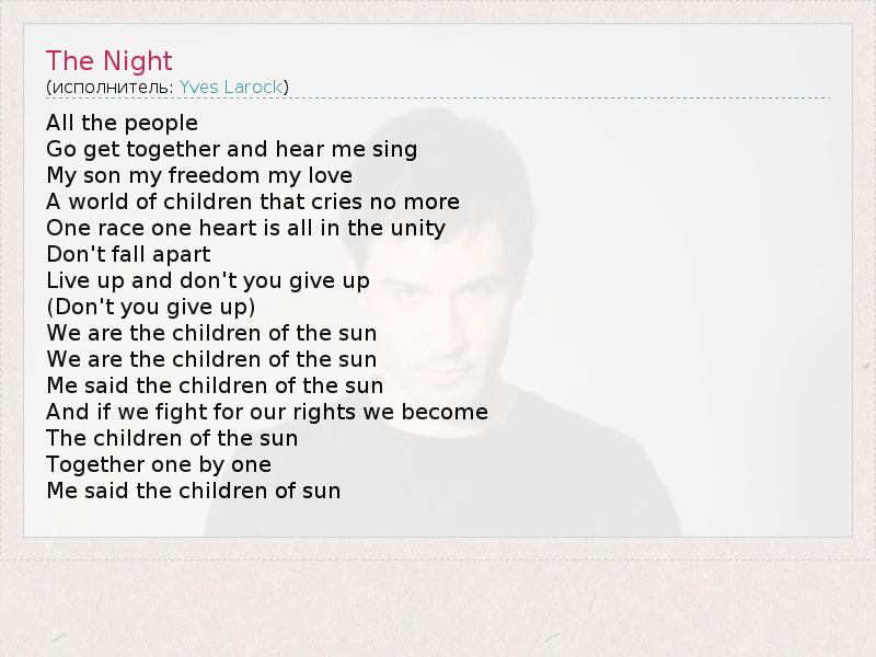 Это интересно:Yves "Larock" Cheminade - швейцарский ди-джей и продюсер.Почти каждый год появляются особые песенки, наполненные морем, солнцем и летом. Примерами таких массивных летних хитов можно назвать “Sun Is Shining” от Funkstar Deluxe или “Love Generation” от Bob Sinclar. Этим летом Data Records представляет ещё один похожий летний хит “Rise Up” от Yves Larock.Все выше перечисленные мелодии объединяет то, что кроме того, что они... продолжение