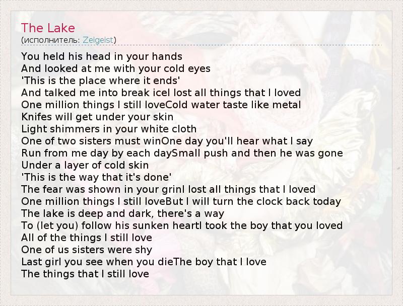 А как ты думаешь, о чем песня "The Lake" ?