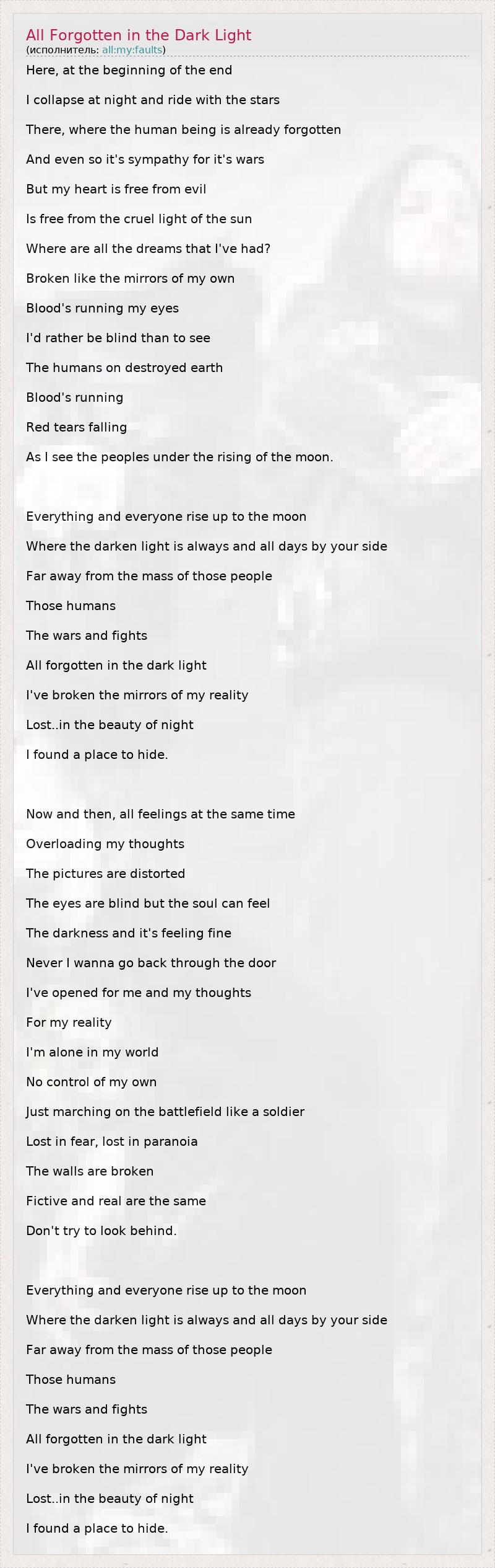 А как ты думаешь, о чем песня "All Forgotten in the Dark Light" ?