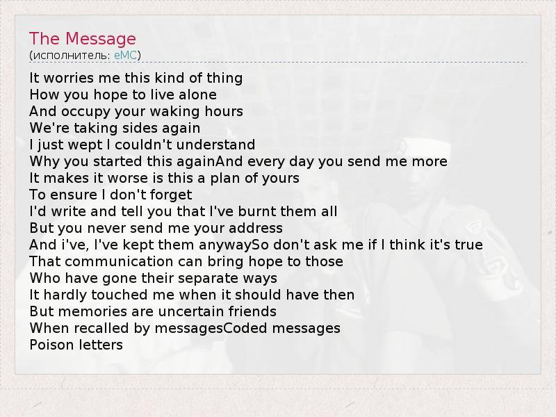 Это интересно:eMC (1998–present) is a hip hop crew composed of rappers Masta Ace , Wordsworth , Punchline and Stricklin .Though not officially formed as a group until 2005, the crew came together in 2001 while touring together on Masta Ace's Disposable Arts tour. Ace described the group's formation in an interview with IllHillEast.com:"It came about back in 2001, I went on tour to promote my album Disposable Arts and on that tour I travel with Strick. Strick was from Milwaukee, where we found Tommy Boy at the time. And I also travel with Punch-N-Words. We ride on the road for about a month or so,... продолжение