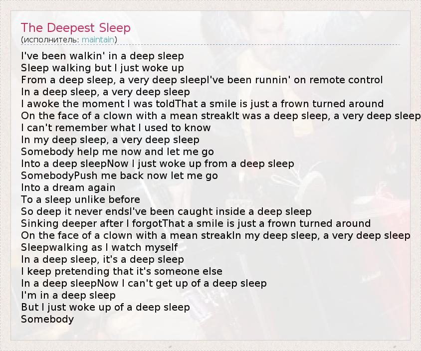 А как ты думаешь, о чем песня "The Deepest Sleep" ?