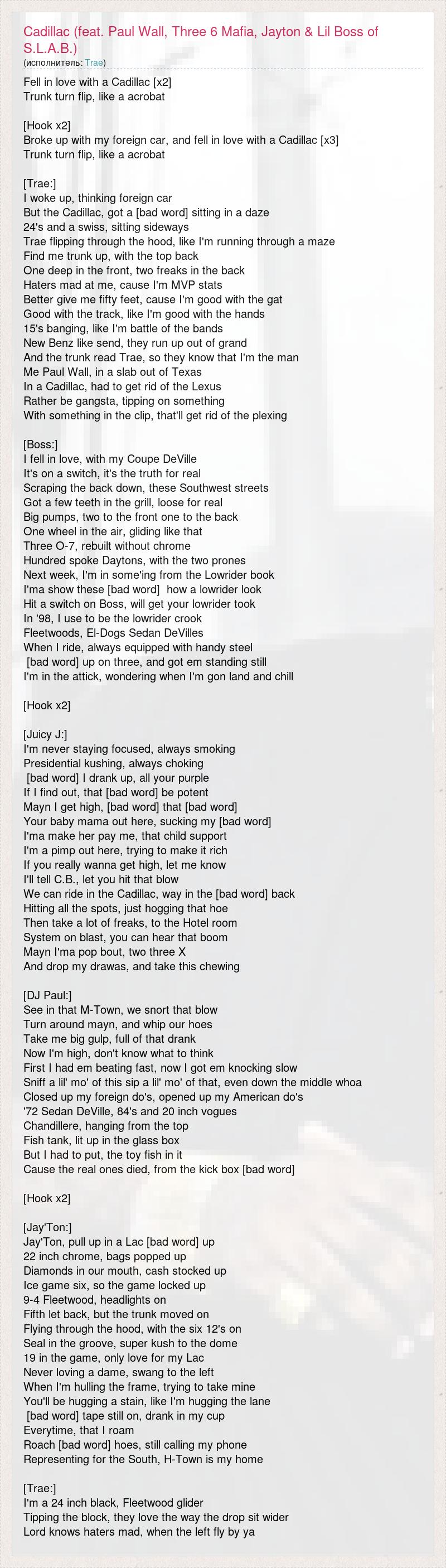 But the Cadillac, got a [bad word] sitting in a daze